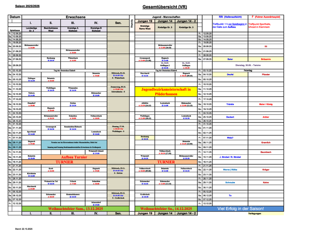 | Weihnachtsfeier Aktive | 13.12.2025, 13:00 Uhr |